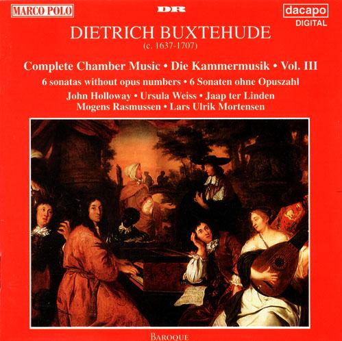 | Buxtehude - Intgrale de la musique de chambre (Vol. 3) - Holloway, Mortensen Holloway, Weiss (v), ter Linden, Rasmussen (vg), Mortensen (cl & org) : Sonates sans opus BuxWV 266, 267, 269, 271, 272 & 273 | ||